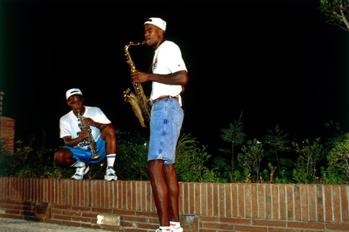 The Sixers are in Spain for a pair of exhibition games and Twitter King Joel Embiid shared this video of teammate Nerlens Noel dancing with a random old Spanish woman. This reminded me of the 1992 Summer Olympics, during which David Robinson (and his jorts) walked through Barcelona and wound up playing saxophone on a random street corner. Let's hope he raised enough money to find a bed that fits him. For more classic sports photos, visit the SI Vault on Twitter.