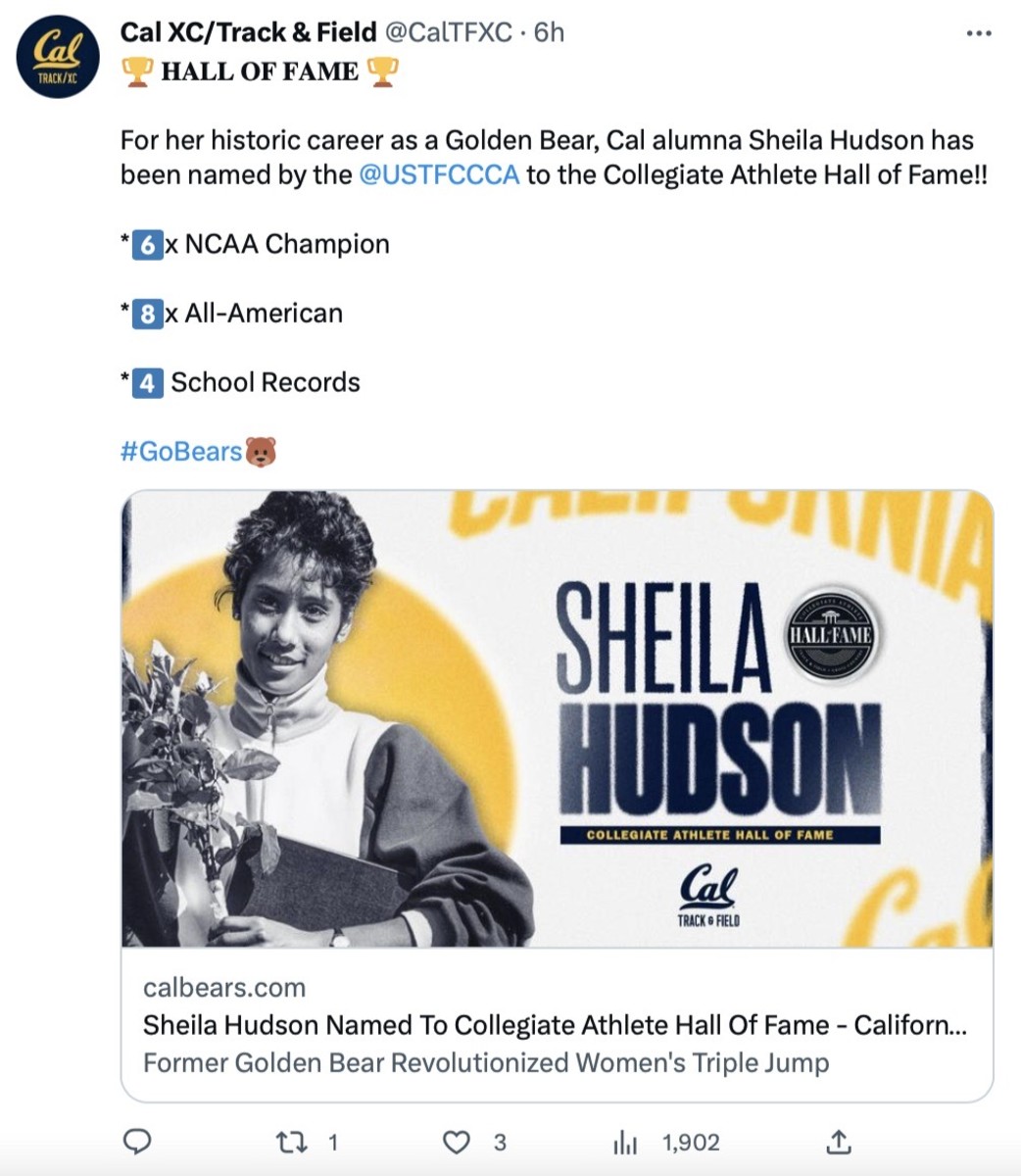 So dominant was Hudson as a collegiate athlete that her Cal records in both the triple and long jumps — outdoors and indoors — still have not been topped 33 years after she graduated.