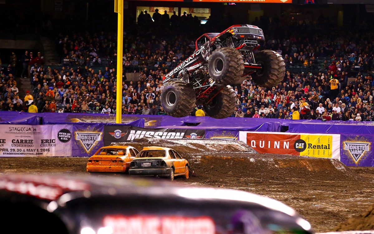 Monster Truck 'Terminator' pleased the crowd with this jump during Monster Jam competition.