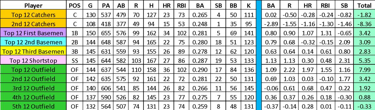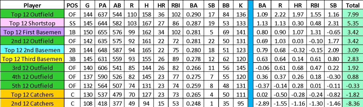 In a 12-team league, the target number should be about 1,077 RBI (about 82 RBI per batter).