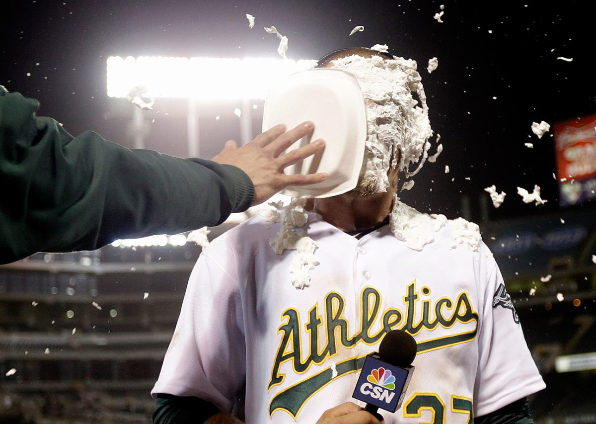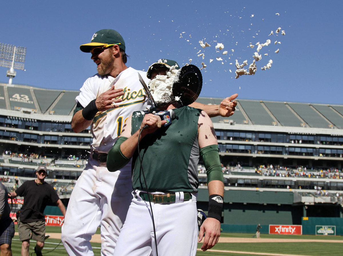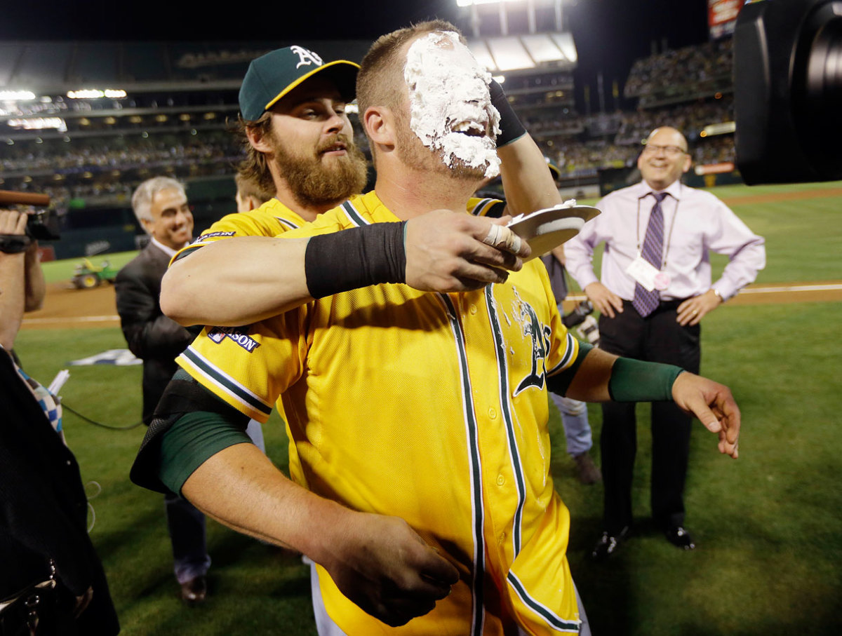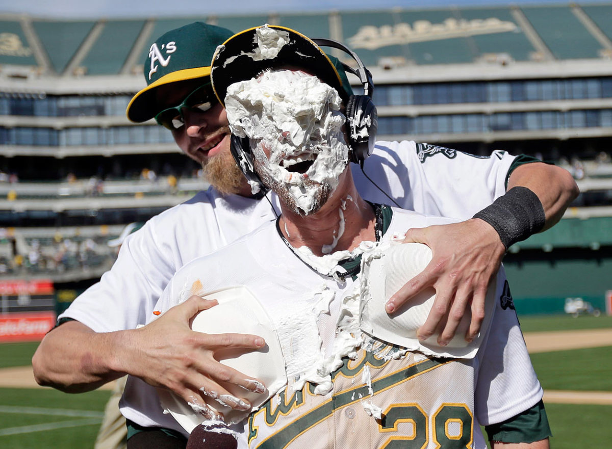 Josh Reddick pies Stephen Vogt