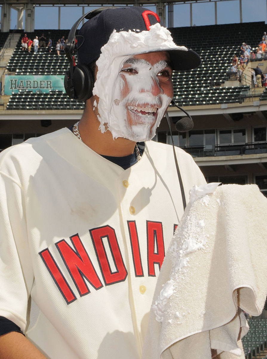 Kelly Shoppach pies Grady Sizemore