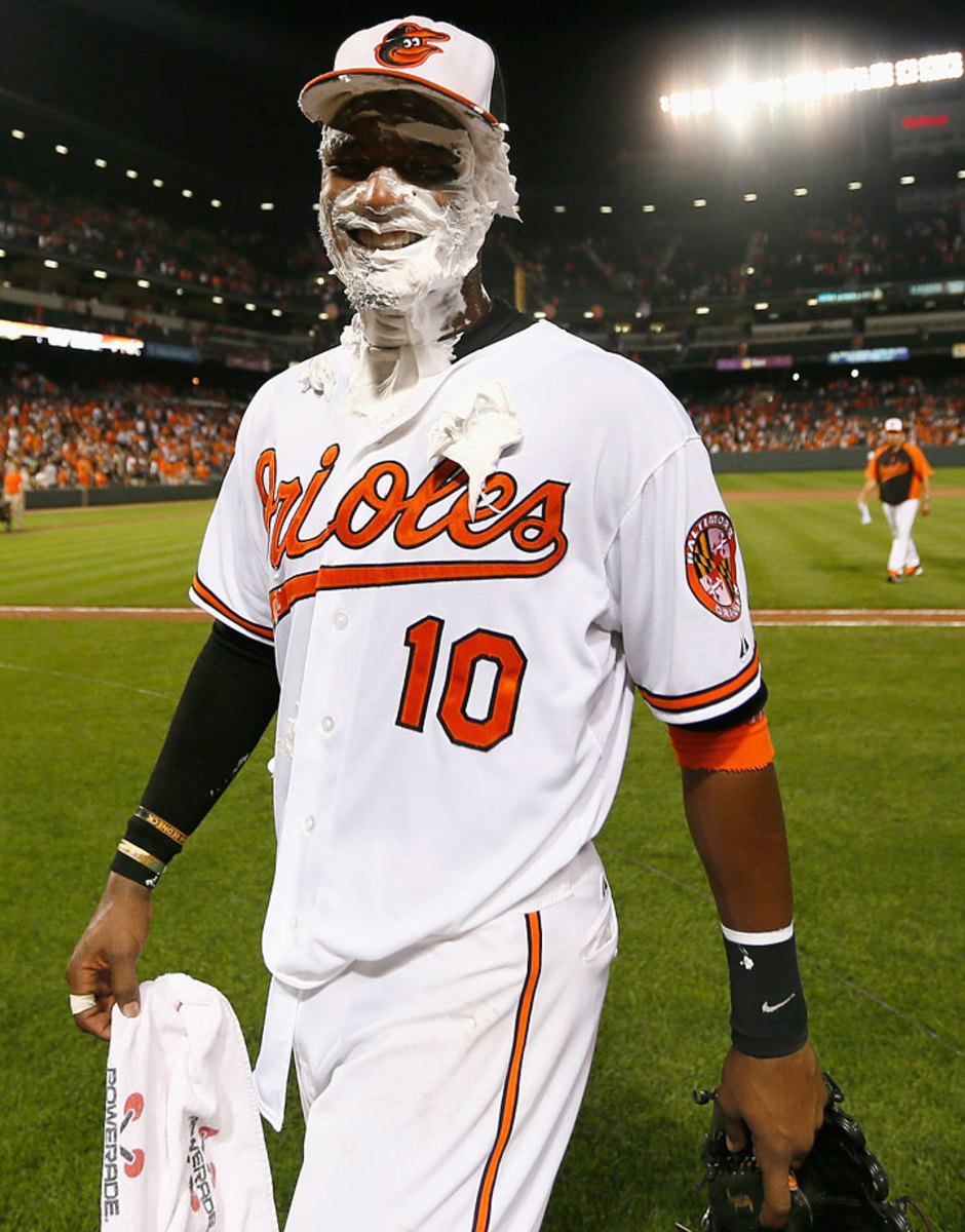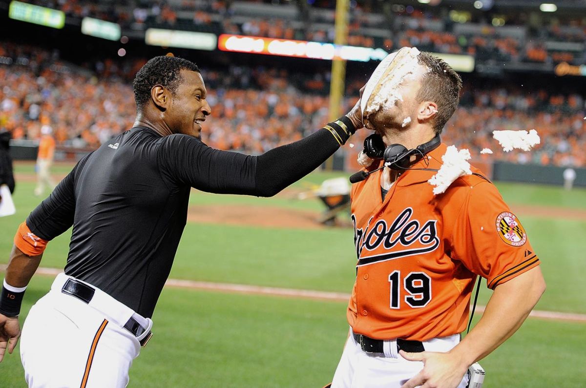 Alexi Casilla and Adam Jones pie Chris Dickerson