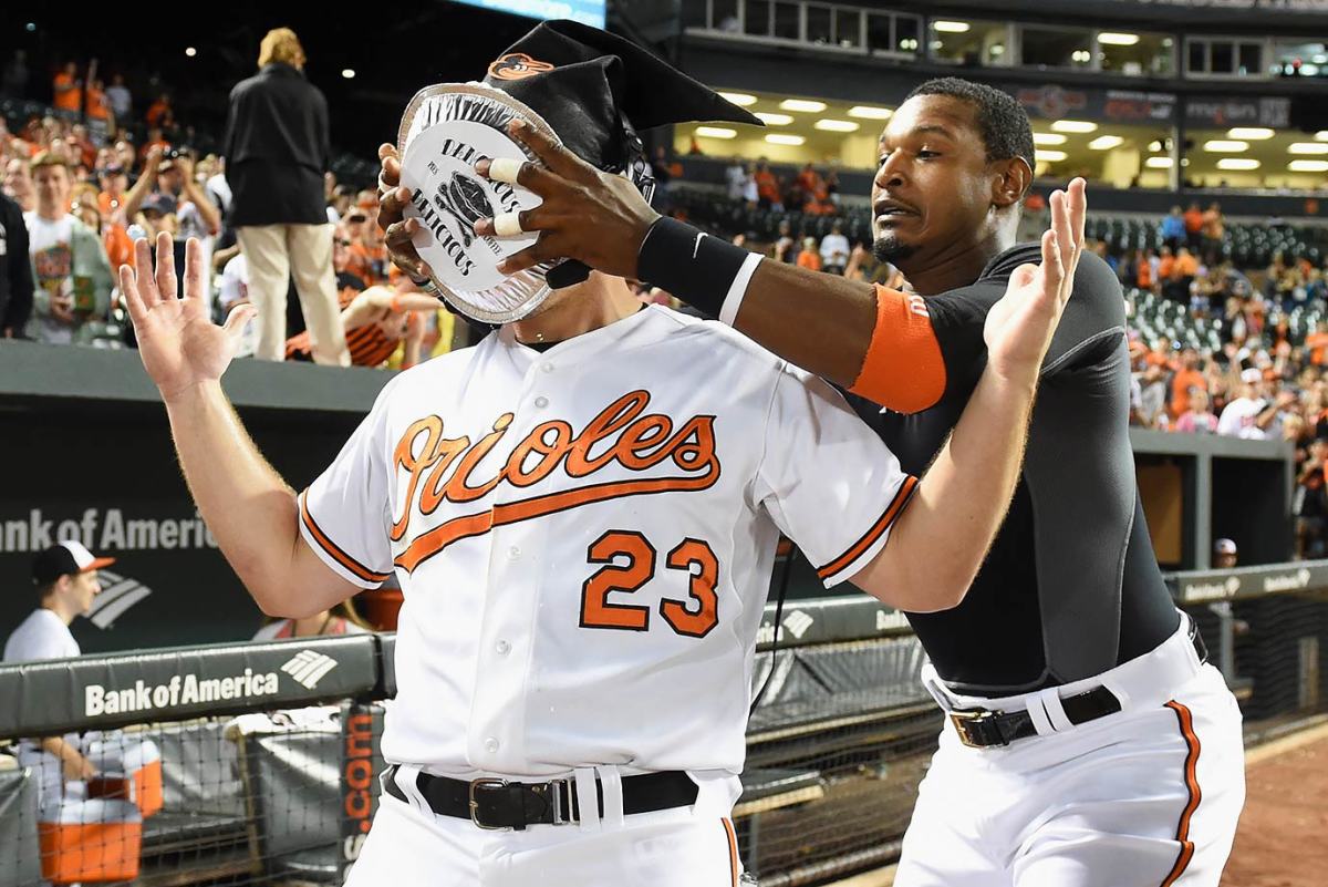 Adam Jones and Manny Machado pie Jonathan Schoop