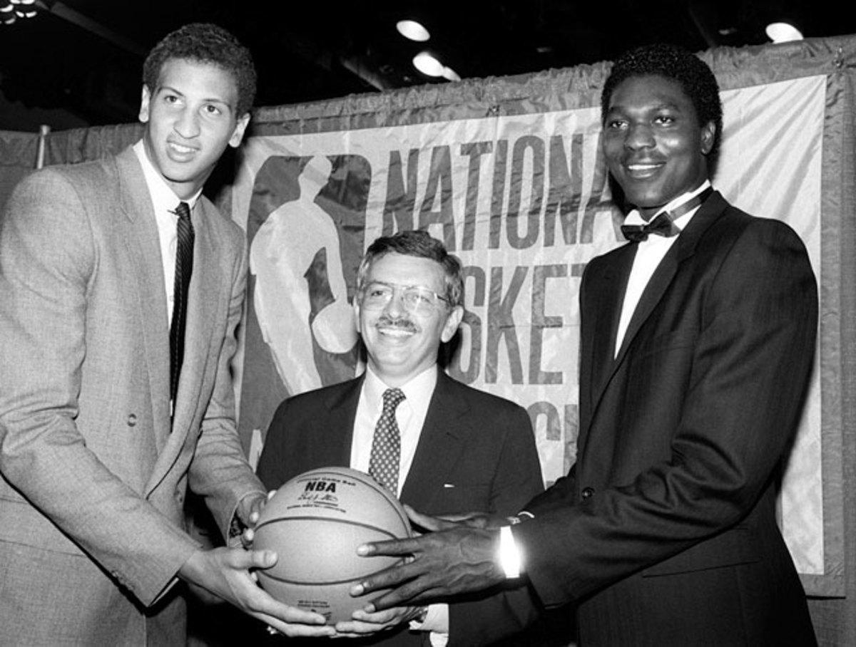 His selection underscores the cardinal rule behind NBA Draftology: You can't draft for need. The Blazers, flush with Jim Paxson and Clyde Drexler on the wings, needed a center and passed on drafting Michael Jordan, Charles Barkley and John Stockton. Bowie (pictured left, with commissioner David Stern and 1984 No. 1 pick Hakeem Olajuwon) struggled with injuries throughout his 10-year run and finished with career averages of 10.9 points and 7.5 rebounds.