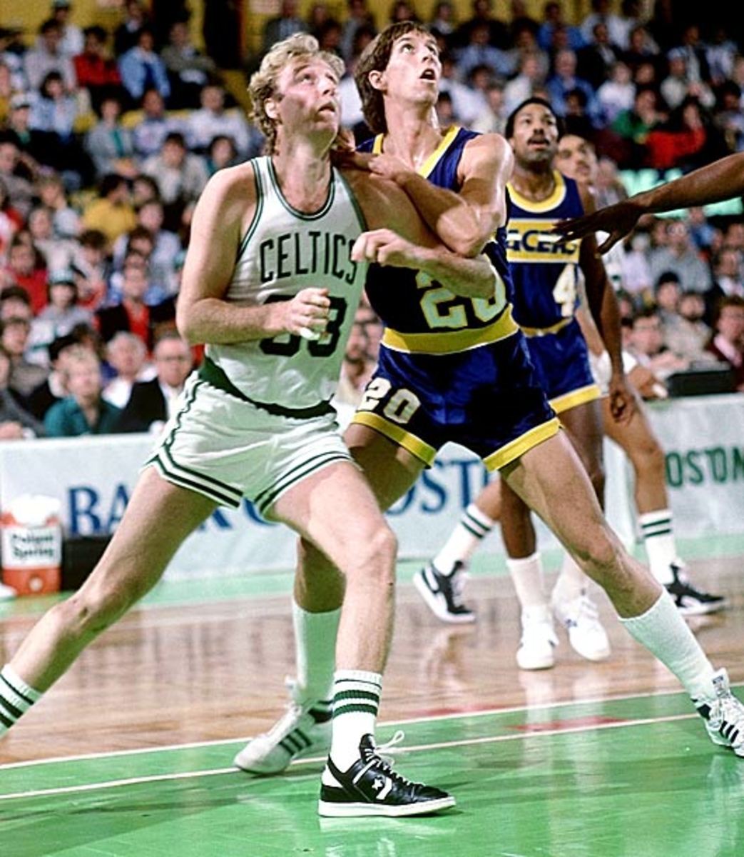 The former Wyoming star (shown here with Larry Bird) split four pedestrian seasons (5.5 points, 4.3 rebounds) between Dallas and Indiana.