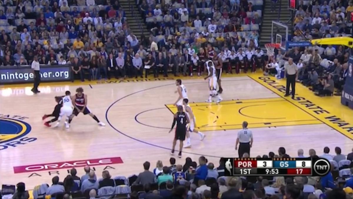 Lopez isn’t necessarily the type to deck an opponent with a physical, blind-side screen, instead establishing value by maximizing his screen’s width. Check out Lopez’s stance as he sets a pick for Damian Lillard at the top of the floor:
