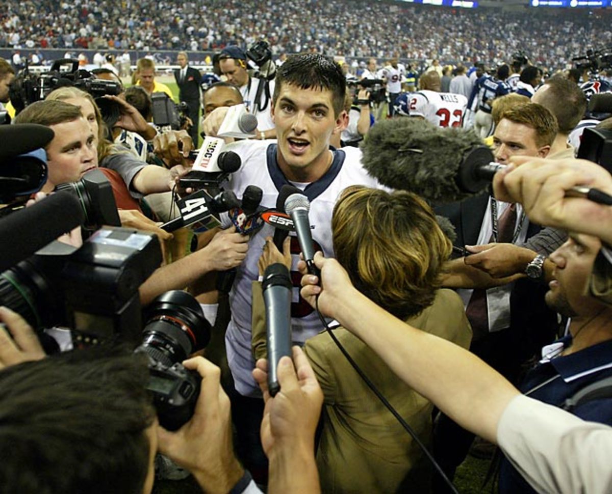 The Texans draft Andre Johnson with the third overall pick in the 2003 NFL Draft. Johnson is now in his 10th NFL season and is a five-time Pro Bowler, two-time First-Team All-Pro and easily the best receiver in Texans' history. The two other wide receivers drafted in the first round -- Charles Rogers (second overall) and Bryan Johnson (17th) -- were two significant draft busts.