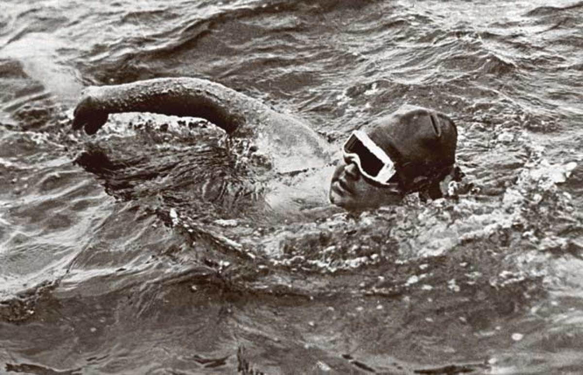 American champion Gertrude Ederle became the first woman to swim the English Channel -- a distance of more than 21 miles. Ederle not only completed the arduous crossing, she broke the men's record by almost two hours.