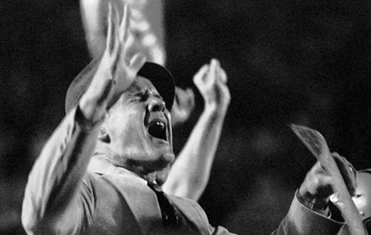 Smith—laying prostrate on the turf, the ball landing harmlessly to his left—threw his arms and legs out, stiff as a board, fists clenched, and launched himself a good 12 inches off the ground, as if he were levitating. Tom Landry, with his beige sport coat and brown fedora and Ol’ Stone Face nickname, flung his hands straight up toward the heavens, face as pained as anyone could ever remember seeing it. And then there was Staubach, head thrown back in disgust, muttering curses under his breath as the field goal unit came on.