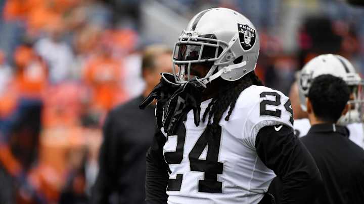 Oakland Raiders running back Marshawn Lynch wore a "everybody vs Trump" t-shirt prior to Sunday's game against the Broncos, and sat during the national anthem.