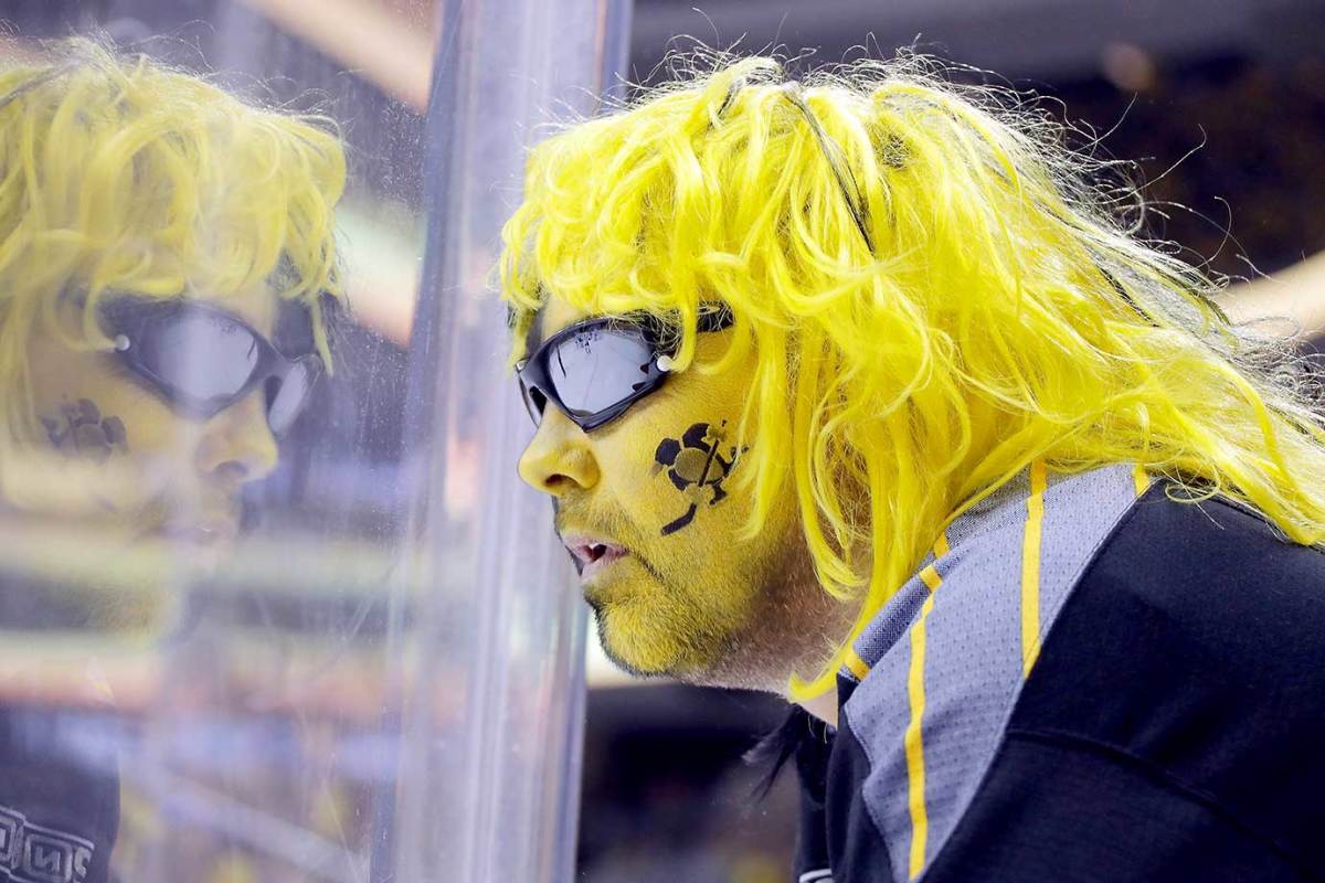 Pittsburgh Penguins fans pose prior to Game 1.