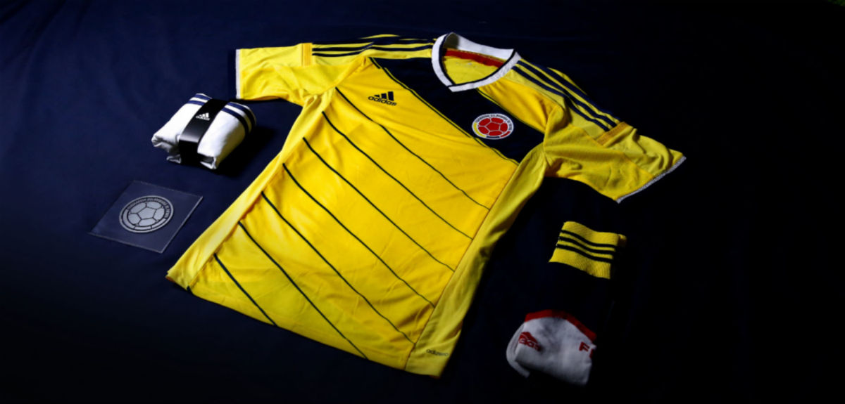 The home yellow mimics the country’s flag, but blue stripes on the shoulder and diagonal blue stripes across the front offer a distinct look. Detailed graphical features include the popular Colombian “Vueltiao Hat” crest on the front, Andean Condor wings on the back and new white shorts. The away red mimics the Colombian looks from the 1990s and also includes the condor on the back. All the white accents and shorts are meant to symbolize the country’s search for peace.