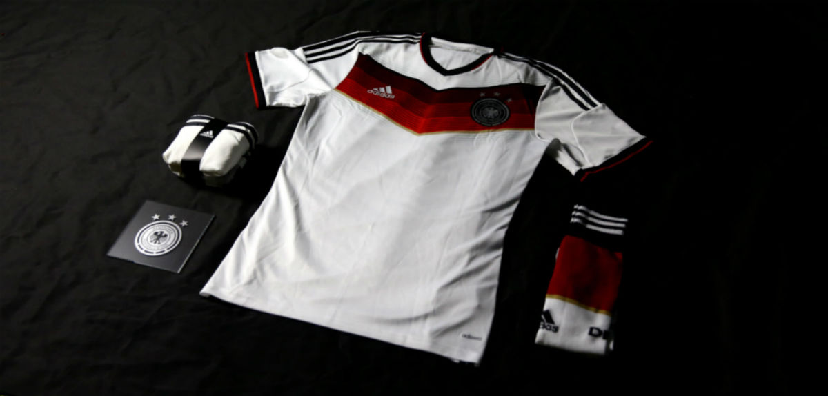 The home white uniform features an angular design in red and black across the chest meant to harken to the architecture of Germany and play on the national flag’s colors. Germany will go all white for the first time in history with its white shorts and socks. The red away kit will sport buttons, three of them. With plenty of black, the uniform’s red is meant as a nod to Rio de Janeiro’s Flamengo district.