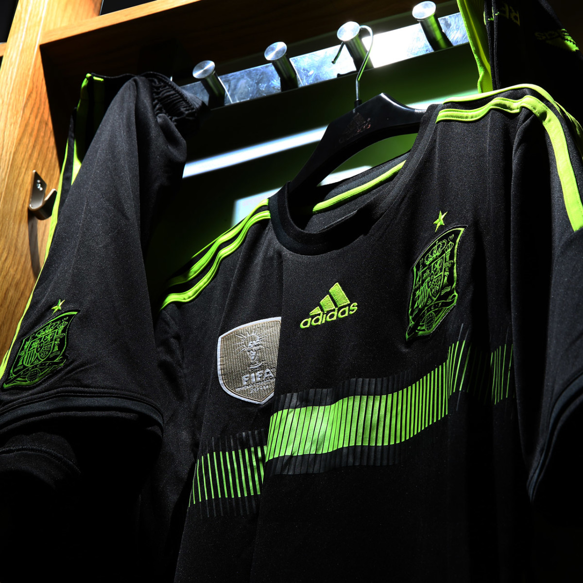 Tradition be damned. The defending champions celebrate that distinction by using gold stripes and a golden crest on their head-to-toe red home look. But the away has none of that. Spain will feature an all-black kit with neon green—known as “electricity”—accents throughout. There’s no tradition there.