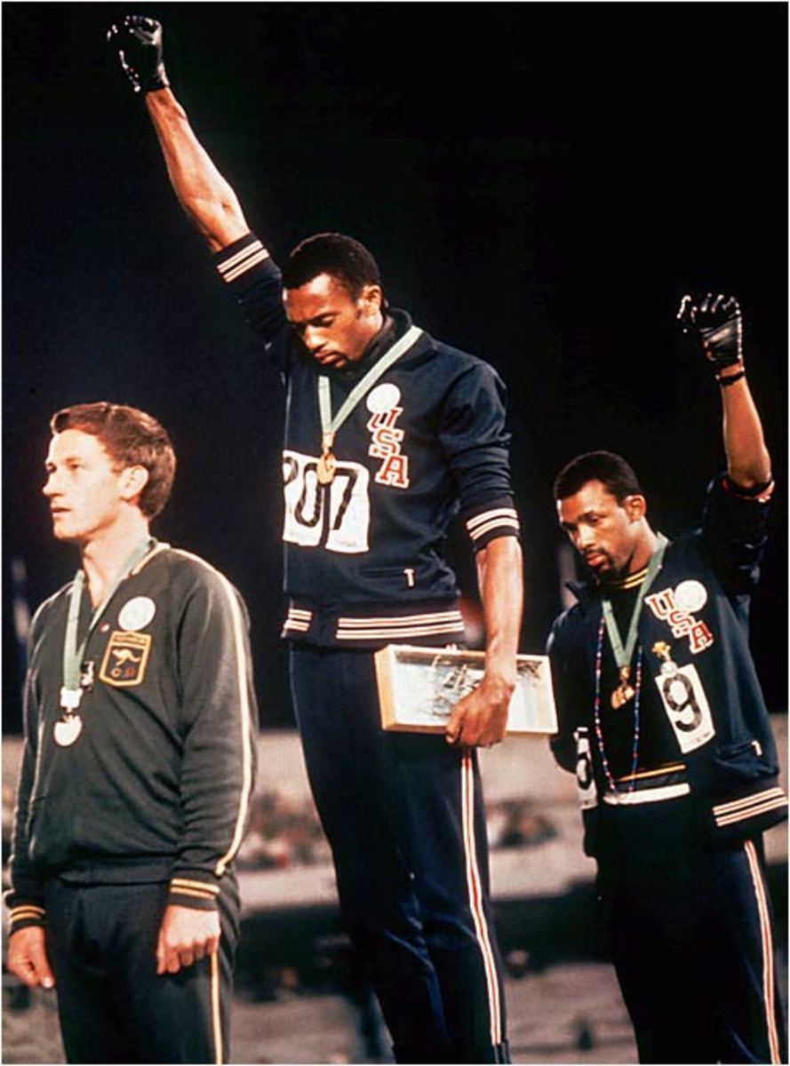 In 1968, 200-meter dash gold medal-winner Tommie Smith and teammate John Carlos raised their hands in a black power salute, casting this indelible image.