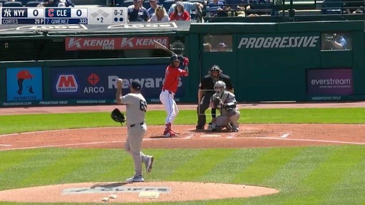 In the second inning of the Yankees’ 8-7 loss to the Cleveland Guardians, Cortes broke out arguably his goofiest move yet on the mound. On a 0–2 count, Cortes started to deliver a pitch to Guardians’ Andrés Giménez when he paused, did his so-called “dipsy doodle” leg kick, and then appeared to hit a pump fake before finally throwing the ball.