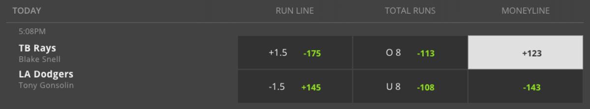 After the Dodgers bounced back in Game 5, from a stunning 8-7 loss in Game 4, the Rays need to do the same in order to force Game 7. The pitching matchup favors Tampa Bay as Snell has given up two runs or less in four of five playoff starts. Los Angeles outscoring Tampa Bay by a 29-21 margin, during the first five games, is a concern here. The Rays have shown lots of fight and the Tampa Bay moneyline price at DraftKings is my play on Game 6 of the World Series.