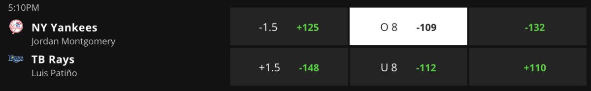 Using a bullpen rotation to open this series, RHP Luis Patiño (1–0, 1.17 ERA) is making his second start for Tampa Bay. He has allowed one run and three hits, over 7.2 innings, during one start and two relief appearances. Third on the depth chart, LHP Jordan Montgomery (1–1, 4.41 ERA) makes his seventh start for New York. He held Baltimore to four hits, over six scoreless innings, during his first start. Since then, he has allowed three or more runs during four of his last five starts. Four of the first six games in this series went over eight total runs. Bet on that trend continuing.