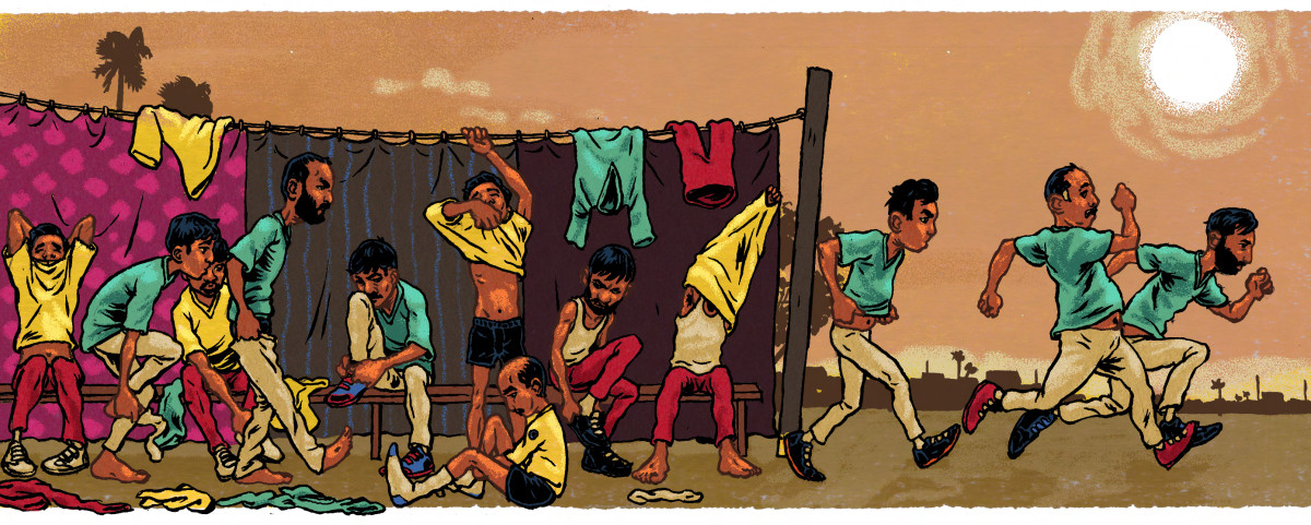 By mid-morning June 16, nine days into the sham, Thakur was playing in a “quarterfinal” when an opposing batter thumped the ball into the bushes. When Thakur ran to fetch it, the strange men got up and began sprinting onto the field. Thakur’s first instinct was to crouch and hide in the overgrow—but he saw that only one man, Davda, was attempting to escape. Thakur stood up, and one of the men approached him. “There’s no need to get the ball,” he said. He was a cop.