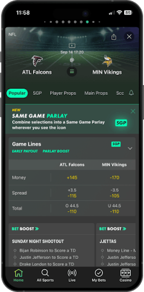 When we first tried it, we bet $10 on a plus-money NFL prop. While we didn't win the bet, we still received the full $50 in bonus bets swiftly, regardless of the outcome. It’s a low-risk way to unlock some bonus funds and start exploring everything the platform has to offer.