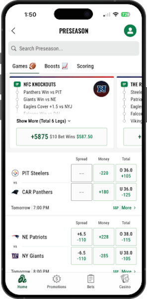 FanDuel Sportsbook is one of the top sportsbooks online in the U.S., and a primary reason for its popularity is its simplicity for new users. The FanDuel app is incredibly intuitive, easy to navigate, and aesthetically pleasing. But it's more than just a pretty face, FanDuel brings the heat when it comes to player prop markets, competitive odds, and persistent promos. There's often a debate about FanDuel vs DraftKings in the sports betting world. While you can't go wrong with either, in our experience, FanDuel usually lands on top.