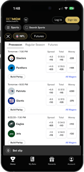 We’re big fans of BetMGM’s ongoing odds boosts and the unique NFL markets you won’t find anywhere else. Add in a slick, newly enhanced app, and you’ve got one of the most recommended NFL betting sites in 2025.