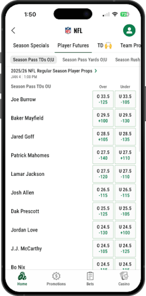 - Early props odds