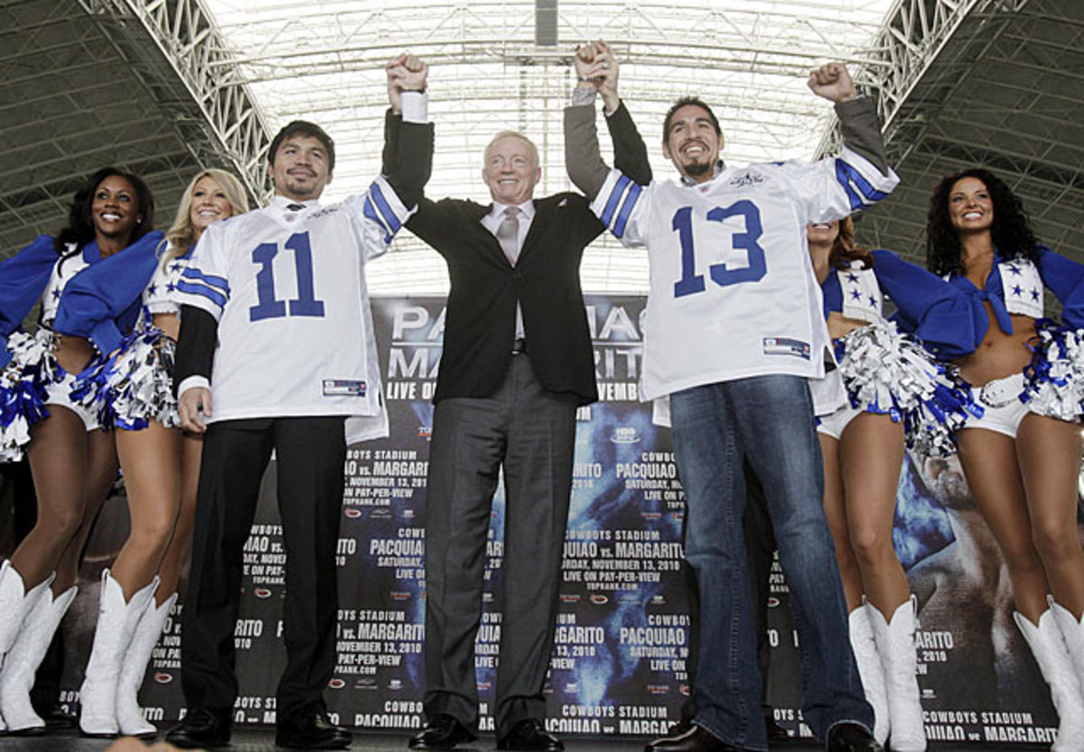 "Cowboys Stadium was built for Super Bowls and super fights. Pacquiao vs. Margarito combines the best elements of both," Cowboys owner Jerry Jones said. "The fans of North Texas embraced Manny Pacquiao as boxing's No. 1 pound for pound attraction when he fought here in March and we cannot wait to extend our hospitality to him again and to fellow world champion Antonio Margarito. This is a great fight, and it is one we can showcase to the fullest in Cowboys Stadium."