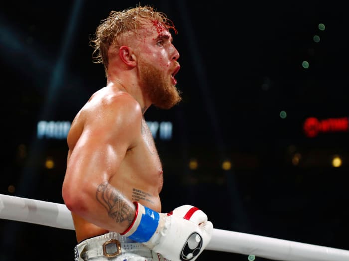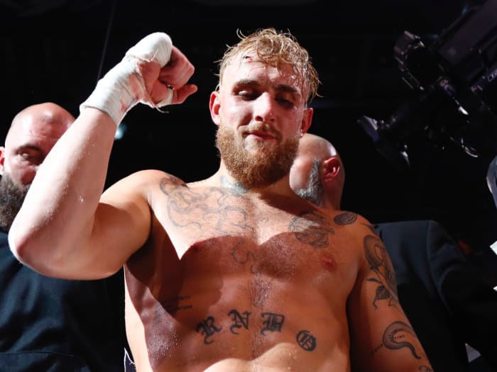 In December, Woodley was back, this time as a late replacement for Tommy Fury, the celebrity boxer and brother of heavyweight champion Tyson Fury who withdrew with an injury. This time, Paul left little doubt, detonating a right hand on Woodley’s skull in the fifth round, sending him face first to the canvas. In the aftermath, Woodley acknowledged Paul’s talent. “At some point,” Woodley said, “We’re going to have to put a little respect on Jake’s name.”