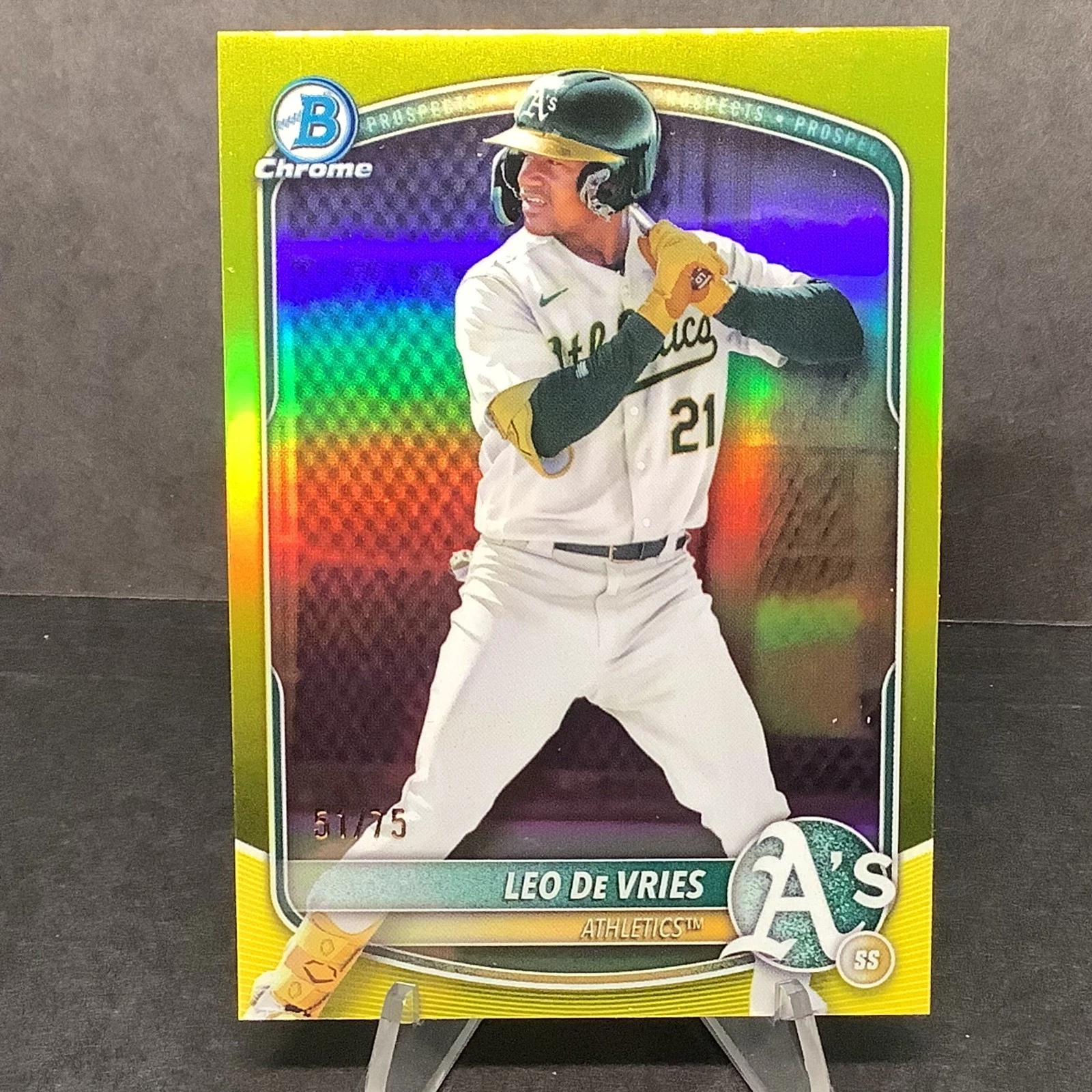 Leo DeVries, Athletics SS-- 2025 Bowman Draft Chrome Yellow Refractor /75