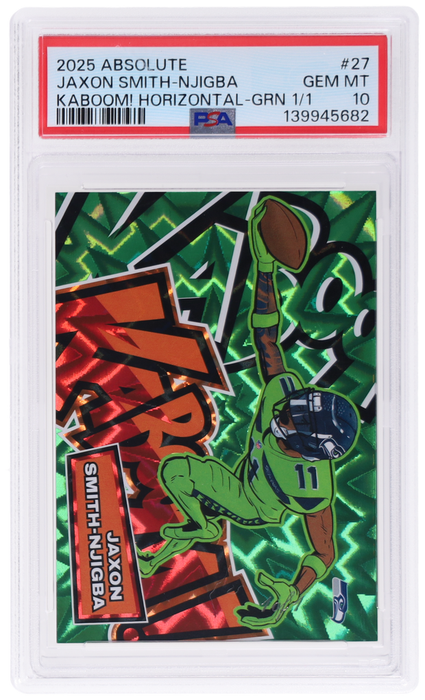 The big bopper of the Jaxon Smith-Njigba card world has it all. Eye appeal? Tons, with the wild green-on-green design. Rarity? It's a 1/1 and it graded at PSA 10. No wonder that within the last two weeks it sold for $48,000. It'll be worth watching to see if this one stays with its buyer for a bit or if it's off for a new JSN best soon.