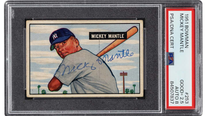 2. 1951 Bowman Mickey Mantle Rookie #253 PSA 2.5, Auto 8