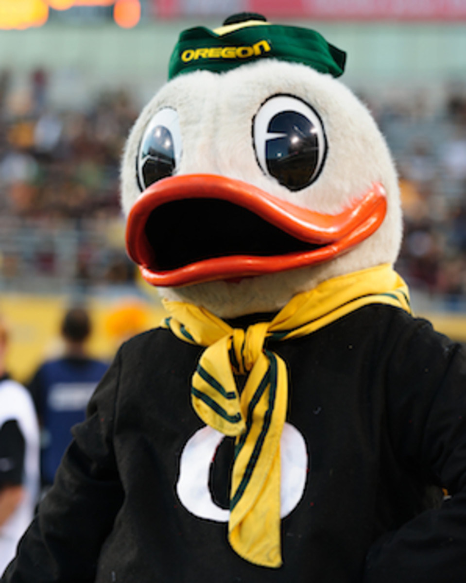 Oregon in the top five means we get to post pictures of the Ducks' mascot all the time. We like it when Oregon is in the top five. (AP)