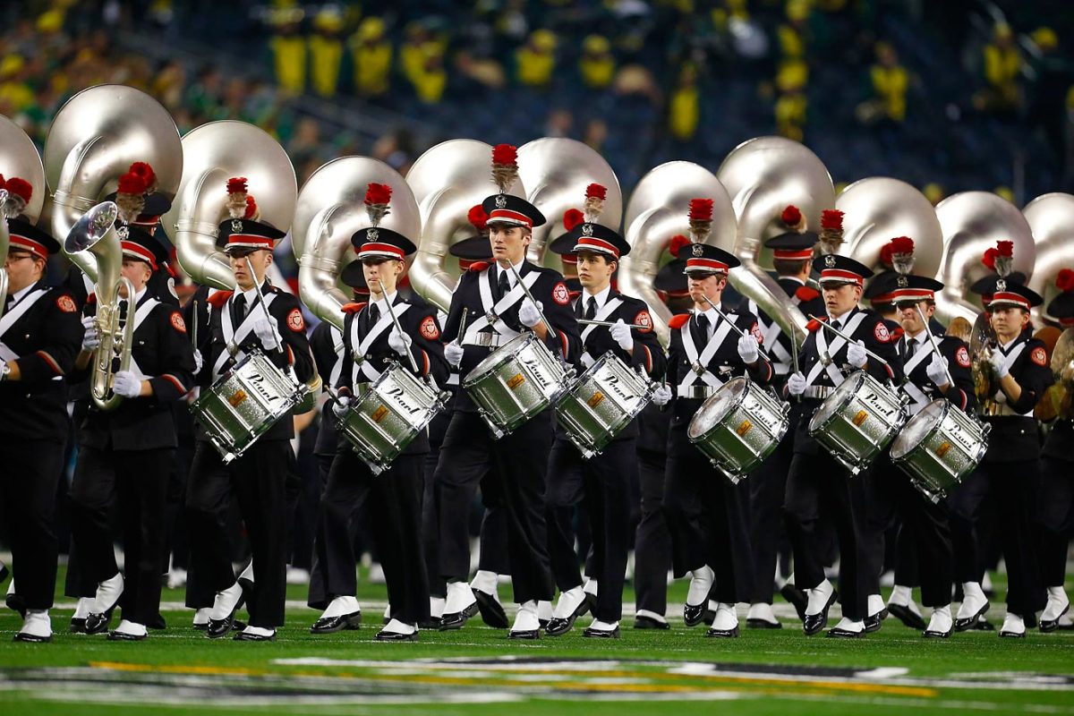 The Ohio State Buckeyes marching band performs.