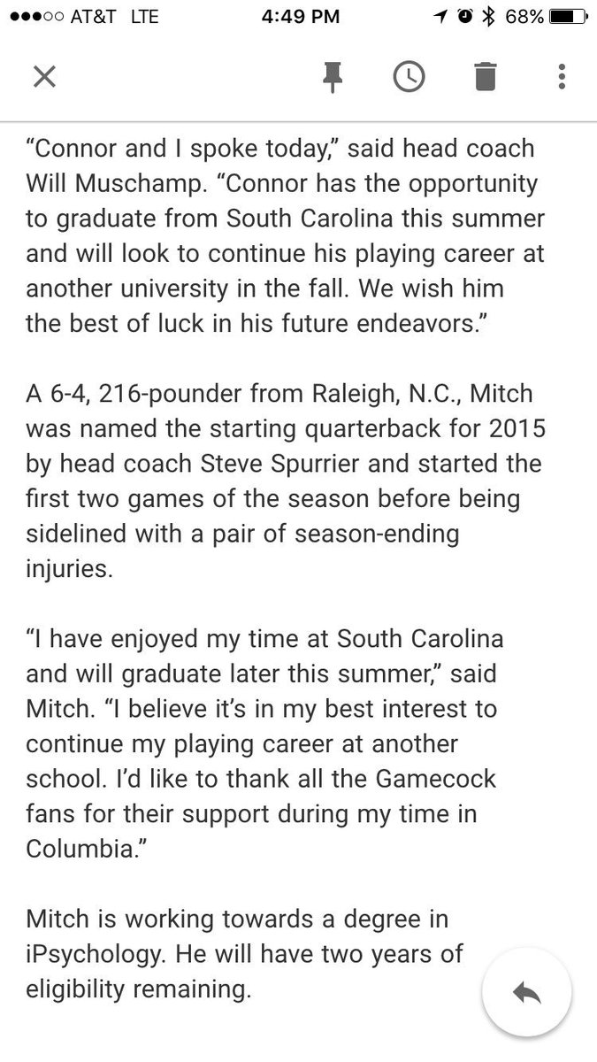 “I have enjoyed my time at South Carolina and will graduate later this summer,” Mitch said in a statement. “I believe it’s in my best interest to continue my playing career at another school. I’d like to thank all the Gamecock fans for their support during my time in Columbia.”