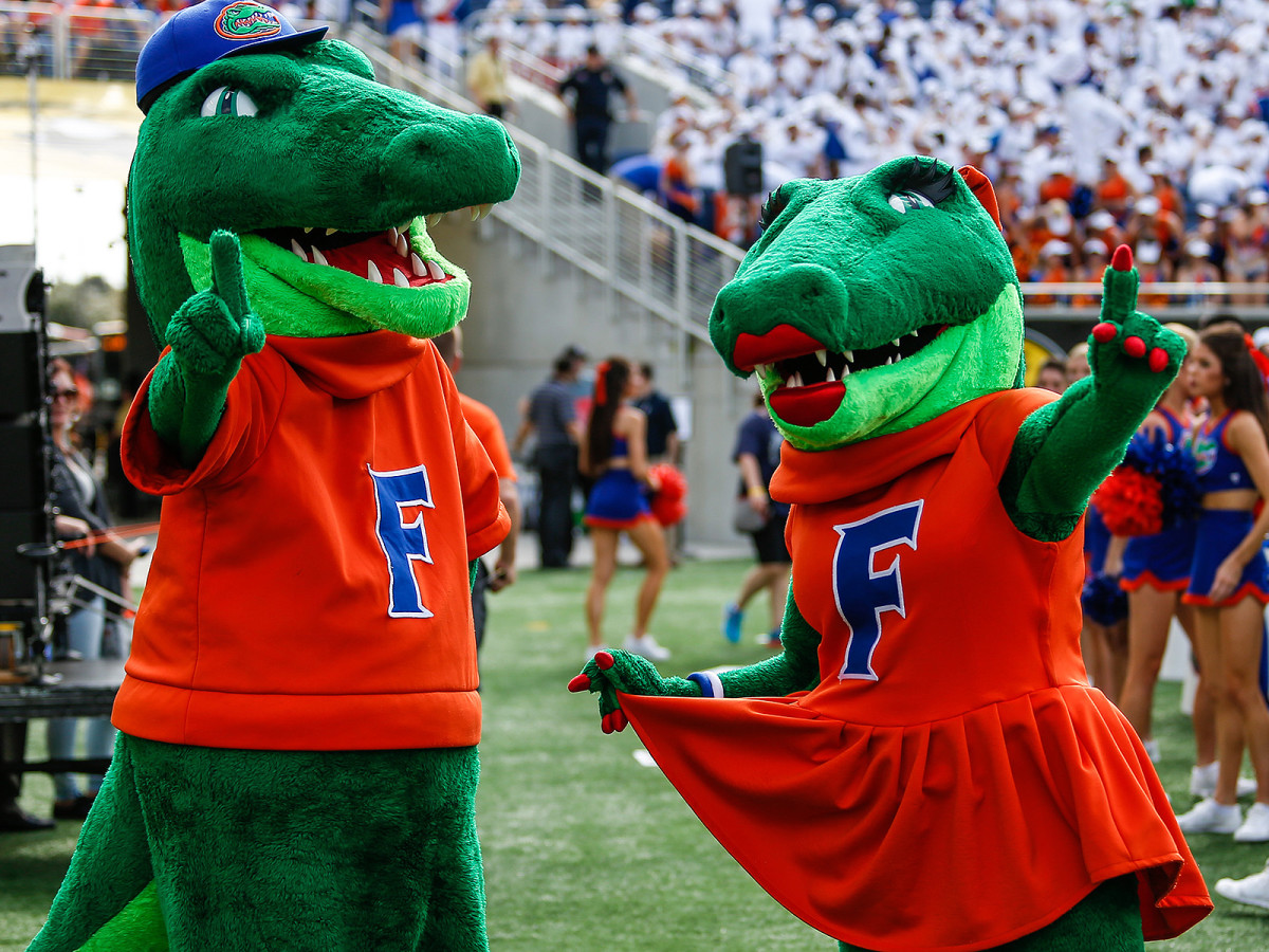 Florida gets big-time points for taking two legitimately bloodthirsty animals and turning them into, essentially, your reptilian grandparents. You know those old couples who go to games wearing jerseys that say, when standing next to each other, “Together Since 1952”? This is them, except they’ve emerged from the Everglades.