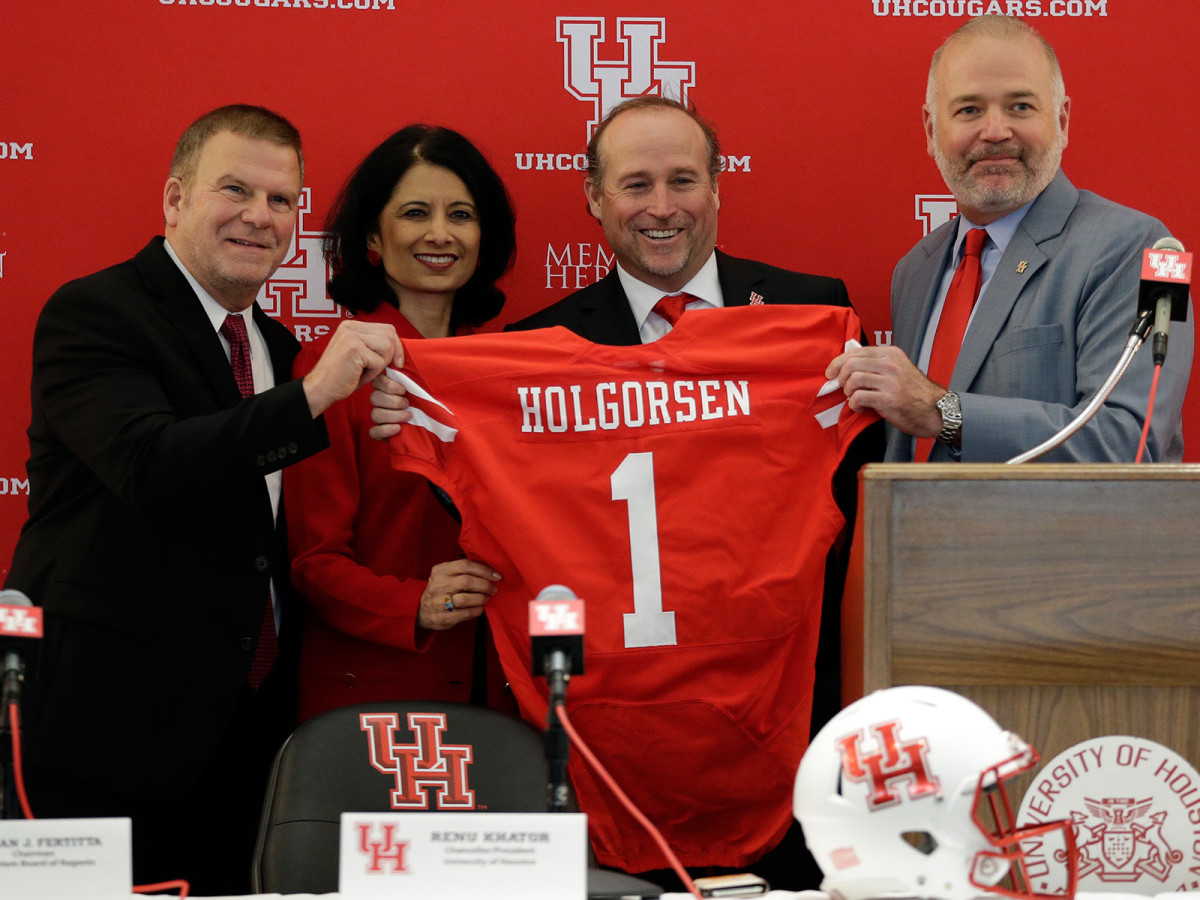 You’re probably wondering why Holgorsen is here and not in Morgantown, after leaving a Big 12 program that he took to seven bowl games in eight years for a perennial AAC contender. He’ll tell you it is because he loves his new home city and the people in it, that his welcome with the Mountaineers was wearing off as his WVU tenure approached the decade mark and that UH isn’t like any other Group of Five program, in part because of its budget, the third-largest among G5 schools. He’ll claim that recruiting is much easier here—the city of Houston is so loaded with talent that he believes 75% of his roster should be local kids—and he expects the path to a New Year’s Six bowl to be simpler: run through the American Athletic Conference unscathed, and your case to be the Group of Five’s highest-ranked team should be pretty strong.