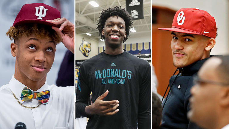 Young saw Oklahoma, which went from the Final Four to an 11-win season in the months before he committed, as an opportunity to help re-elevate the Sooners' status as well as his own. He could begin to build something in his city while getting guaranteed playing time in a competitive Big 12 conference. Big fish, little pond. Bluebloods present the potential for the opposite problem: Lots of prized recruits in one incoming class can put top prospects into a little fish in a big pond sort-of situation.