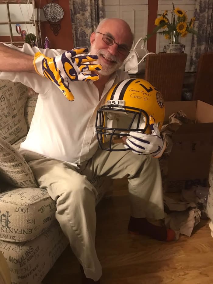 ATLANTA, Ga. – Eric Cookmeyer scrolled through an old text exchange until he found the video of Edward Aschoff buffing a gold LSU helmet. He chuckles. The memories from that day in August come flooding back.