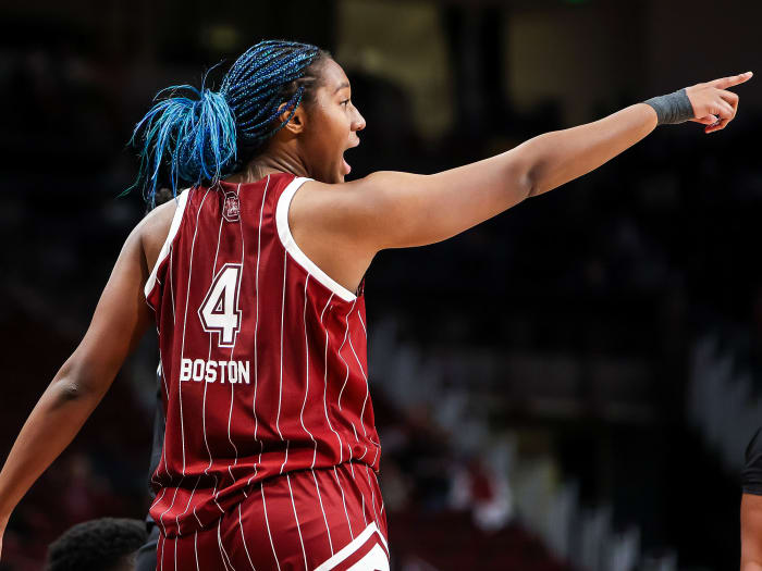 For Boston, scoring 50 in a two-point loss may have been a great individual performance, but it was not good enough. She wanted to be dominant, and that meant winning the game. Now a 6'4" junior forward at South Carolina who rocks iconic multicolored braids, she never thought back then she would be in the position she is now.