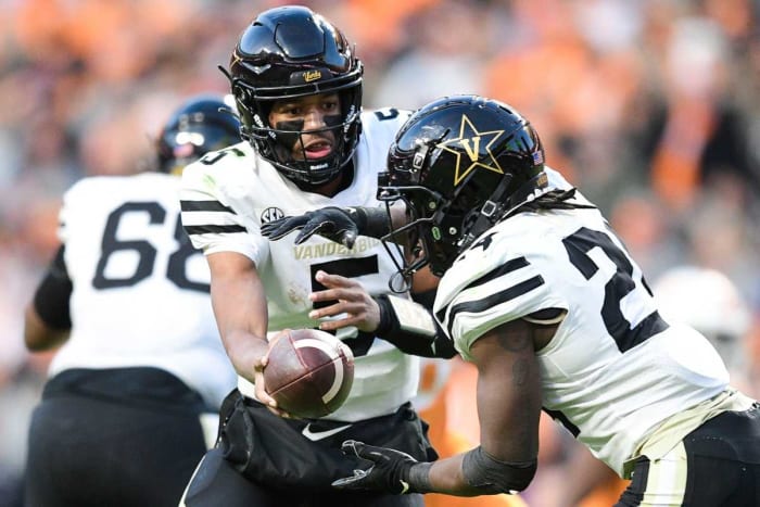 Speaking of running, Vandy was abysmal in 2021 on the ground, rushing for 1,479 yards for 3.5 yards per carry. Re’Mahn Davis (211 yards) missed most of last season with a foot injury and should be in the rotation. Rocko Griffin (517), the team’s leading rusher, is back, as is Patrick Smith (360).