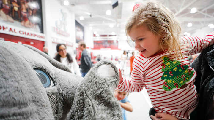 • The Alabama gymnastics team held its annual RISE Center holiday party. The gymnasts and RISE students were also joined by a very jolly guest when Big Al joined the festivities.