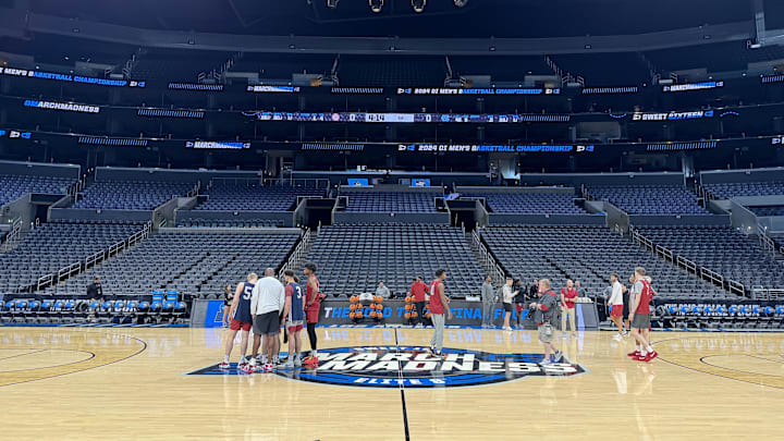 Back in Spokane, Alabama's open practice only went for around 45 minutes. This practice is much longer, lasting nearly two hours with the first 15 minutes being open for viewing. This means Alabama used this practice to work on a lot more than just a shootaround. During the viewing period we saw skill work with guards and bigs separately, team shooting drills, and the beginning of some work on screen actions with guards and bigs together.