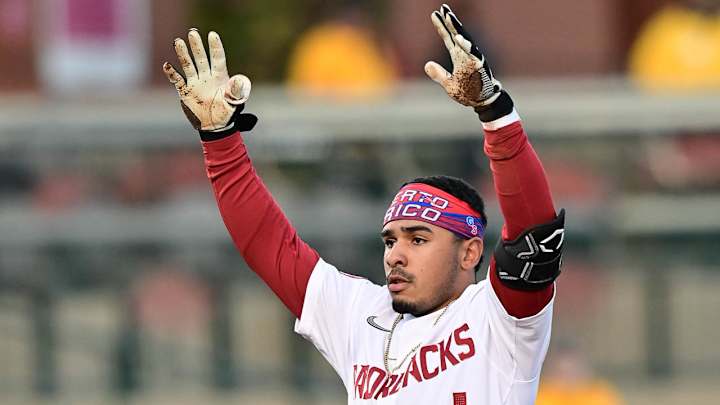 FAYETTEVILLE, Ark. — Timely two-out hitting helped the Hogs overcome an early deficit and pick up their ninth win in a row as No. 7 Arkansas (14-2) fended off UNLV (5-9), 13-7, on a chilly Tuesday night at Baum-Walker Stadium.