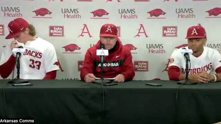 Razorbacks Dave Van Horn, PlayersArkansas Razorbacks coach Dave Van Horn with pitcher Hagen Smith and designated hitter Kendall Diggs after run-run 13-2 win over Eastern Illinois.Sports Illustrated All Hogs News, Analysis and More|Share on FacebookShare on XAdd us on Published Feb 25, 2023SPORTS ILLUSTRATED ALL HOGS NEWS, ANALYSIS AND MOREShare on FacebookShare on XHome/Arkansas Razorbacks College Baseball