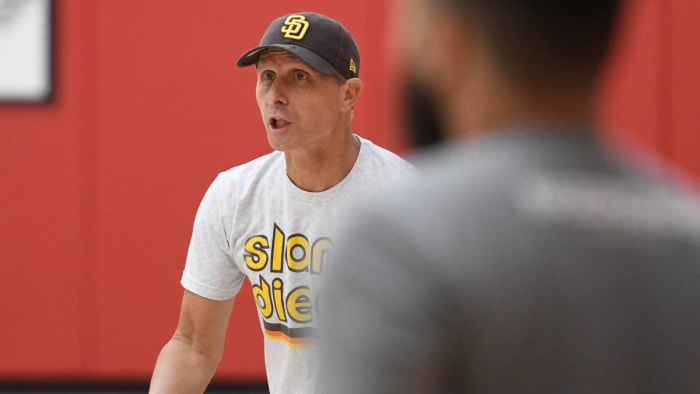Near the end of practice, he did pushups with teammates and coaches as a result of team members not accomplishing a goal during a free-throw drill.