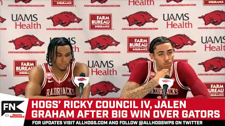 Hogs Ricky Council IV, Jalen Graham After Florida WinArkansas Razorbacks Ricky Council IV and Jalen Graham after big games in dominating win over Florida on Saturday.Sports Illustrated All Hogs News, Analysis and More|Share on FacebookShare on XAdd us on Published Feb 18, 2023SPORTS ILLUSTRATED ALL HOGS NEWS, ANALYSIS AND MOREShare on FacebookShare on X