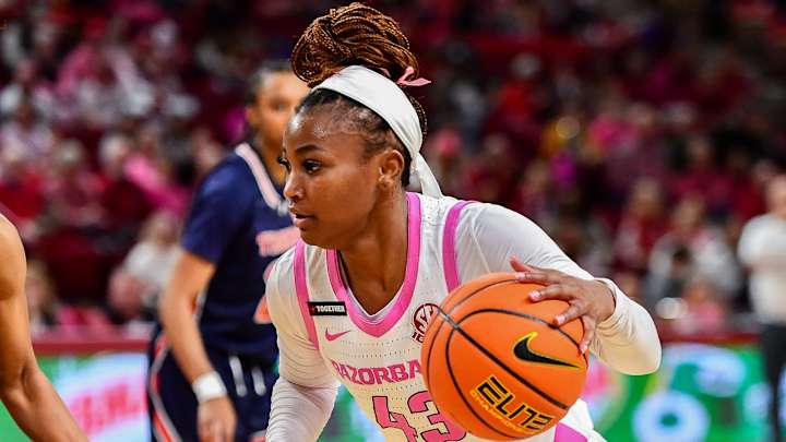 Razorbacks Talhiah Scott (33 points) and Makayla Daniels (15 points, 4 rebounds) in 74-72 win Sunday evening at Bud Walton Arena in Fayetteville, Ark.
