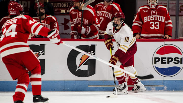 BC currently sits in sole second place in Hockey East with a 10-5-0 record — UConn (15-7-3, 9-5-1) is third and BU (12-13-1, 8-10-0) is fourth — and is beginning to find a steady rhythm with its current offensive pairings, which head coach Greg Brown has altered often this season.